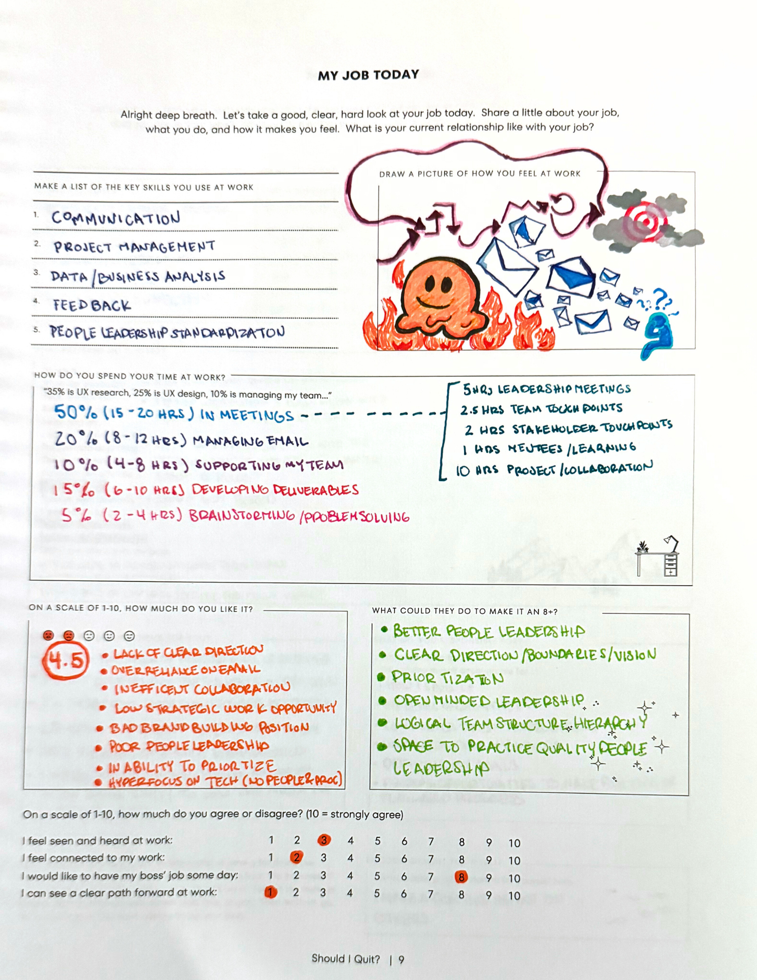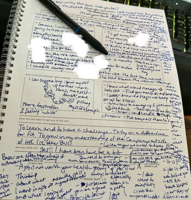 I’m going through a mid-life questioning (not at all a crisis), have recently taken a severance package at my toxic job and I’m taking time to detox. The last thing I want to do is rush into yet another bad situation so I bought the journal to help me decide who I want to give my working hours to next.