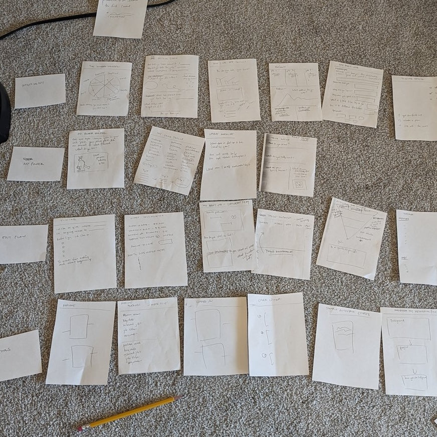 Handwritten ideas, arranged by theme.