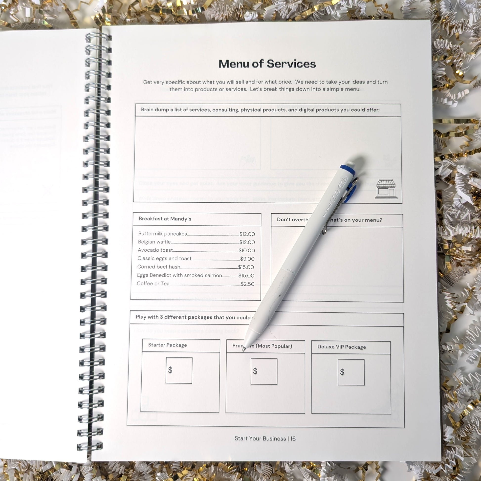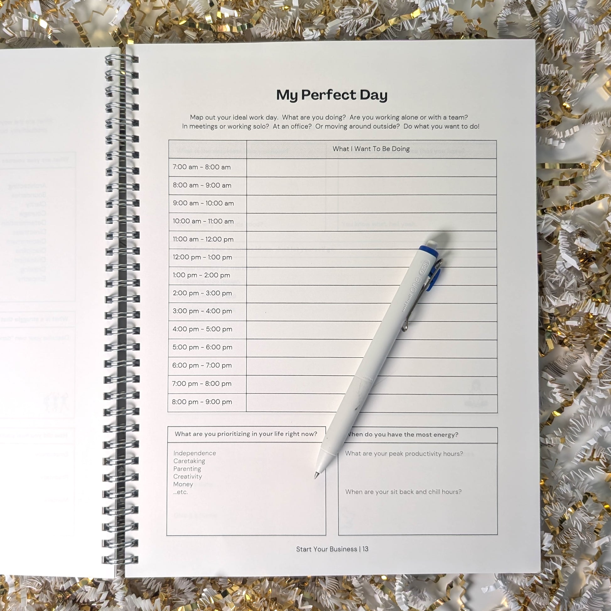 The Start Your Business Journal is a guided workbook to help you go from “someday” to “I’m doing this.” This 25-page journal is packed with prompts, exercises, and frameworks designed by career coach Mandy Tang to help you build a business that actually fits your life. Every single page is different—no filler, no fluff—just thoughtful, strategic guidance to help you clarify your idea, shift your mindset, and start taking action.